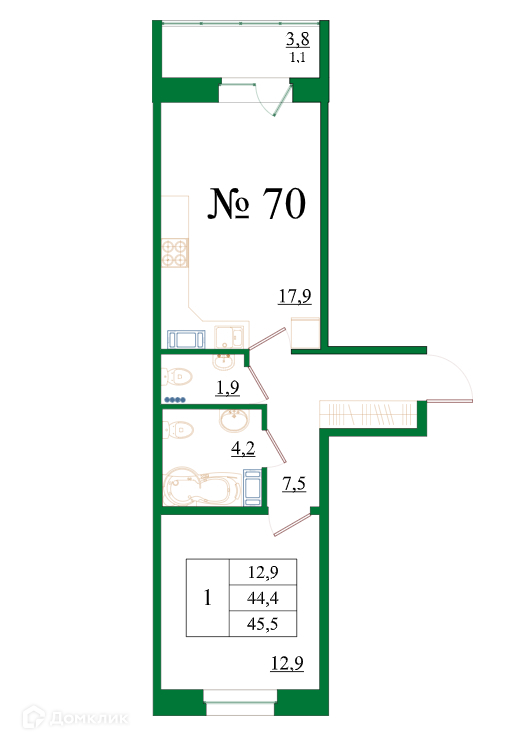 Планировка 1 комн. в ЖК Орловский бульвар