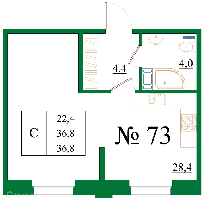 Планировка Студия в ЖК Орловский бульвар
