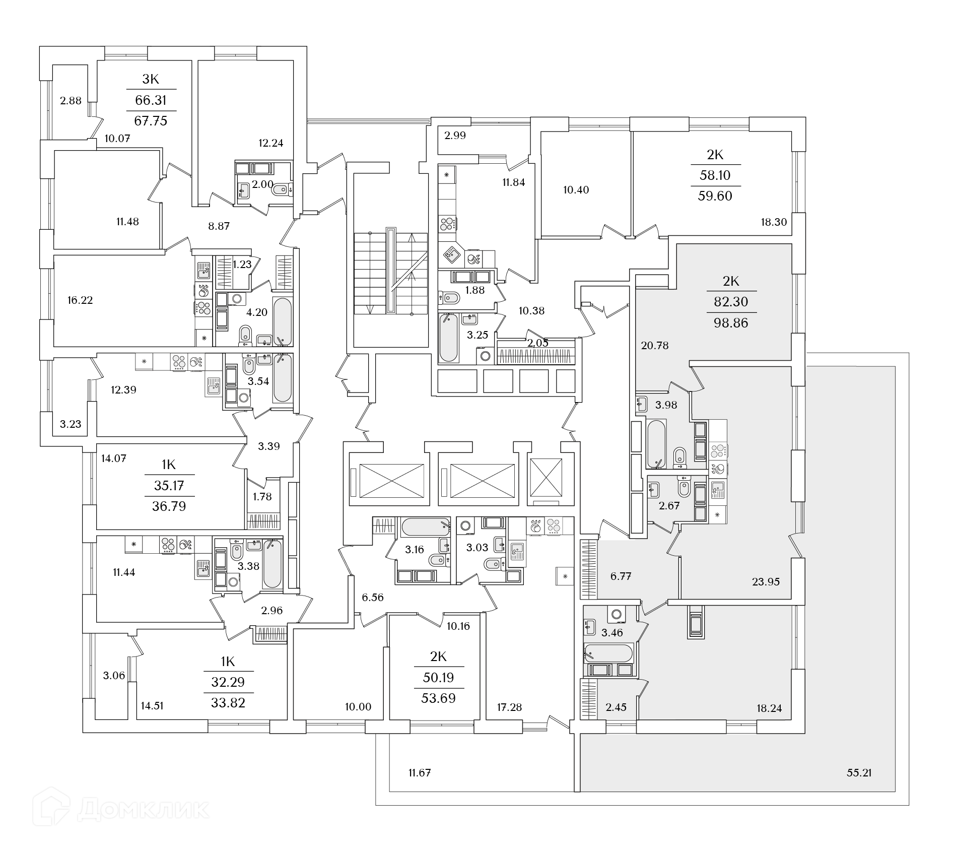 Площади квартир