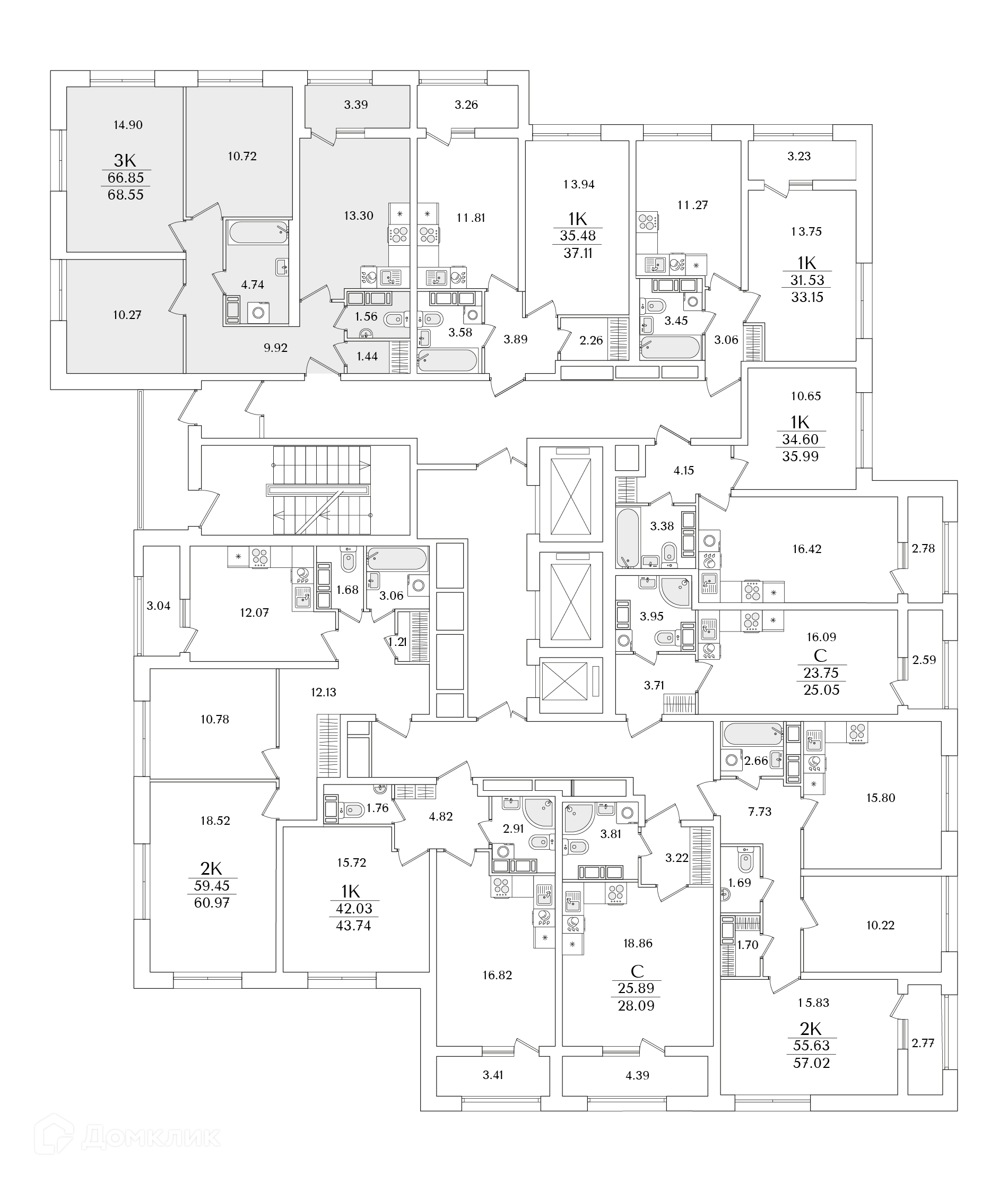 Площади квартир