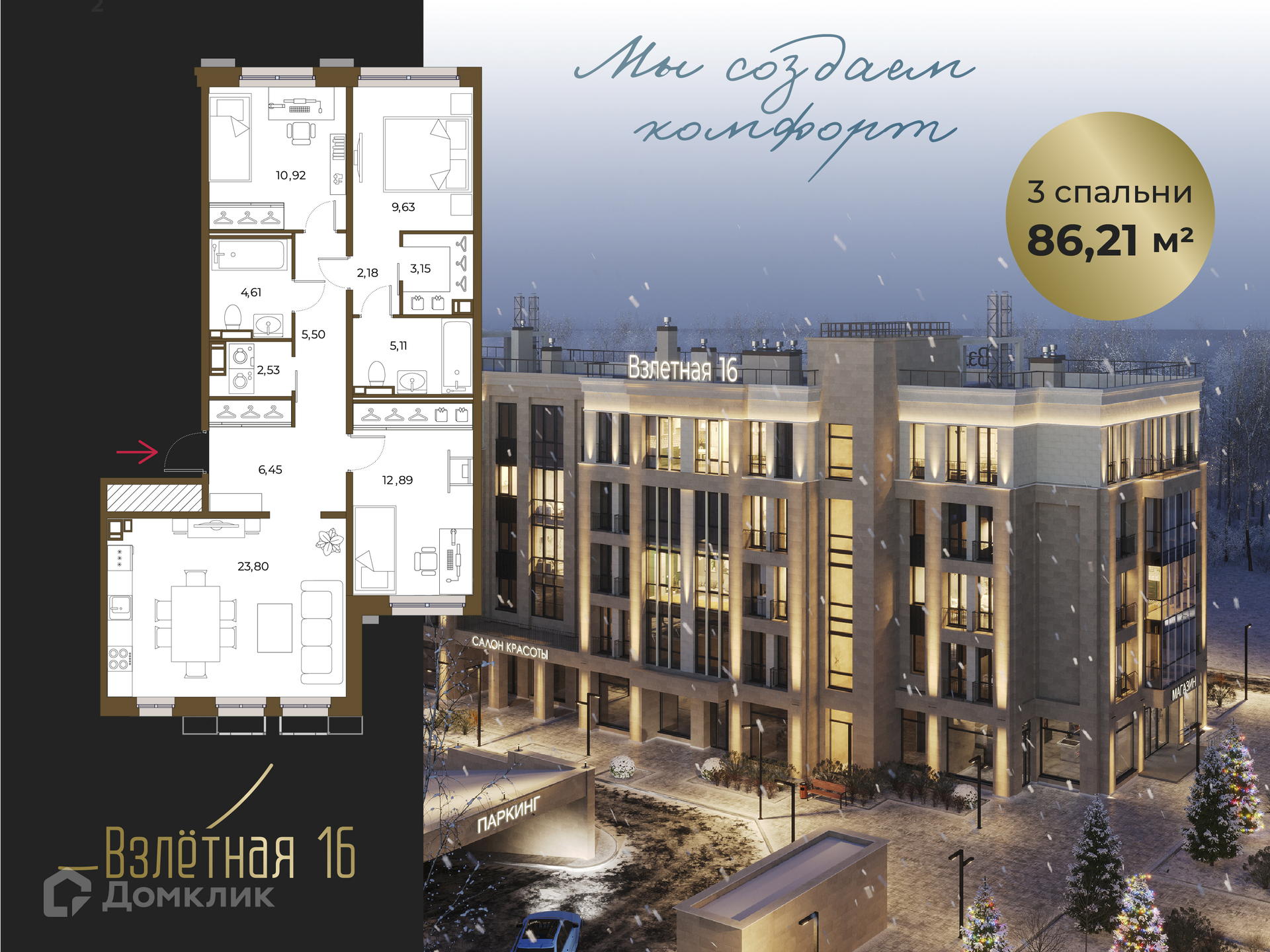 Новый ЖК «Взлетная 16», камерный малоэтажный дом на 68 квартир. Дом состоит из трех 5-этажных секций. Комплекс является уникальным за счет небольшого количества квартир с большим выбором продуманных планировочных решений. Важной особенностью жилого комплекса является наличие подземного паркинга на 42 парковочных места + гостевая парковка, закрытый и безопасный внутренний двор, колясочные и велосипедные в парадных, 30 кладовых помещения в подземном паркинге, как дополнительное место хранения сезонных вещей. ЖК «Взлетная 16» - идеальное пространство для спокойной семейной жизни в созвучии с динамикой городского комфорта. Строгость линий, многоплановость фасадов, внимание к деталям — вот что лежит в основе подхода к архитектурным решениям, объединяющим привычную классику и актуальность.