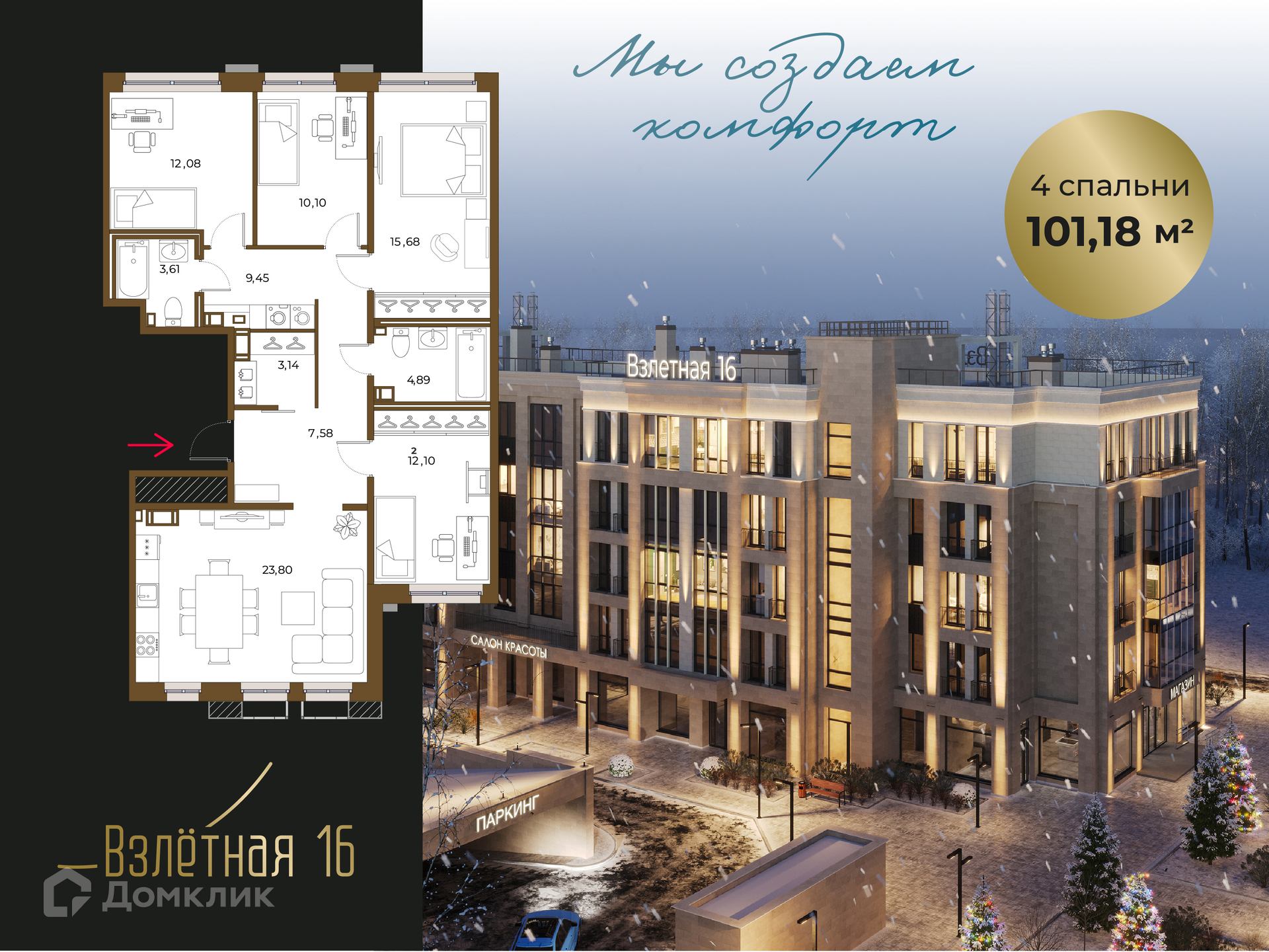 Продается 4-комнатная квартира в новом жилом комплексе "ЖК Взлетная 16" 🏢. Квартира расположена на 4-м этаже 6-этажного дома. Отличный вариант для семьи.