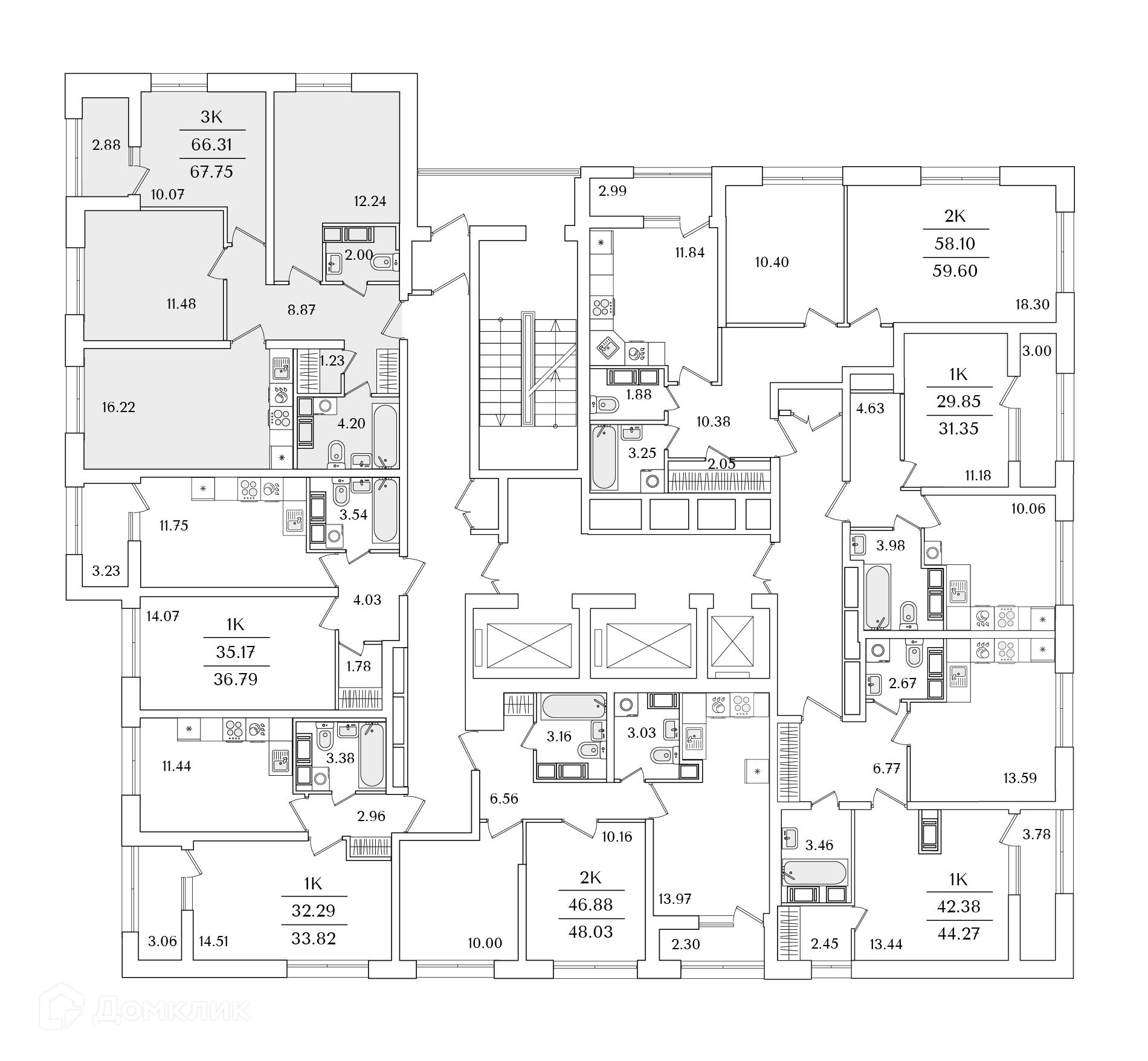 Площади квартир