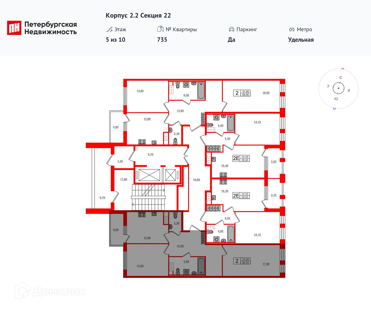 • Площадь - 66.5 м²