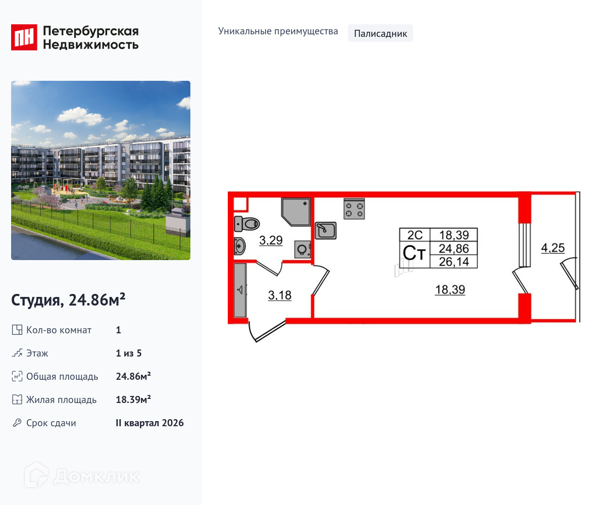 Продается Студия в востребованном жилом комплексе "ЖК Парадный ансамбль" 🏢