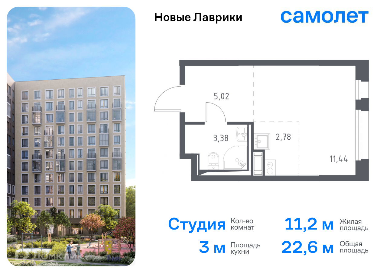 Предлагается Студия в новом жилом комплексе "ЖК Новые Лаврики" 🏢. Квартира расположена на 5-м этаже 13-этажного дома. Отличный вариант для инвестиций.