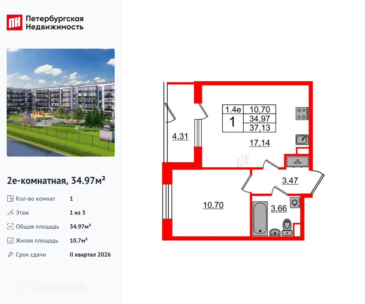 Продается 1-комнатная квартира в современном жилом комплексе "ЖК Парадный ансамбль" 🏢