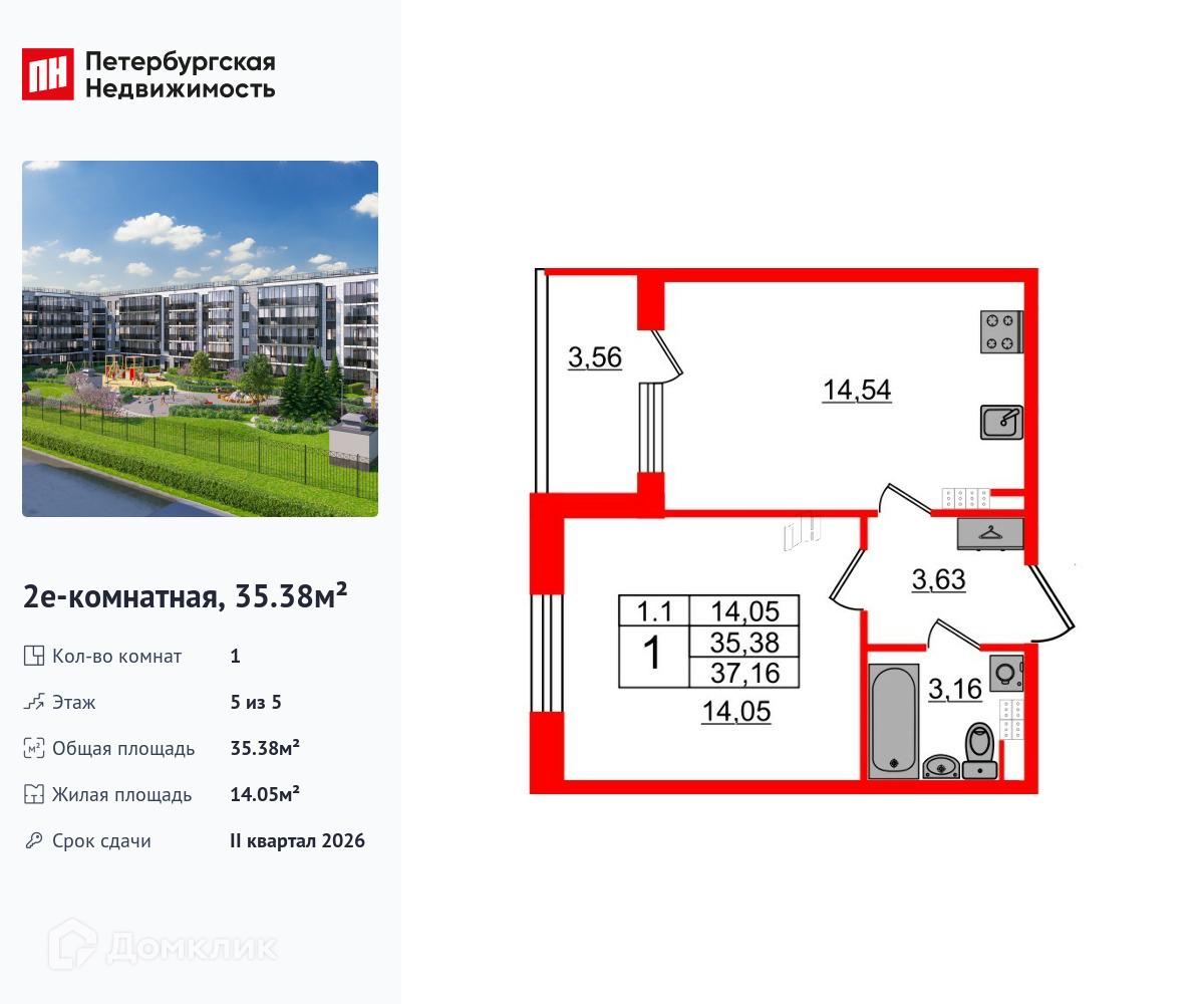 Доступна к покупке 1-комнатная квартира в востребованном жилом комплексе "ЖК Парадный ансамбль" 🏢
