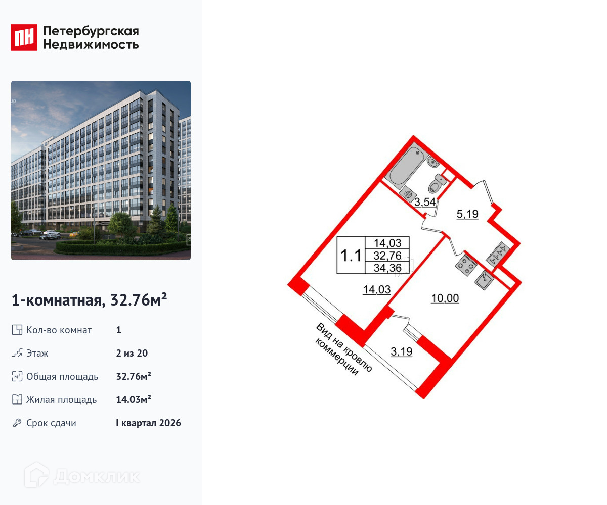 • Площадь - 32.76 м²