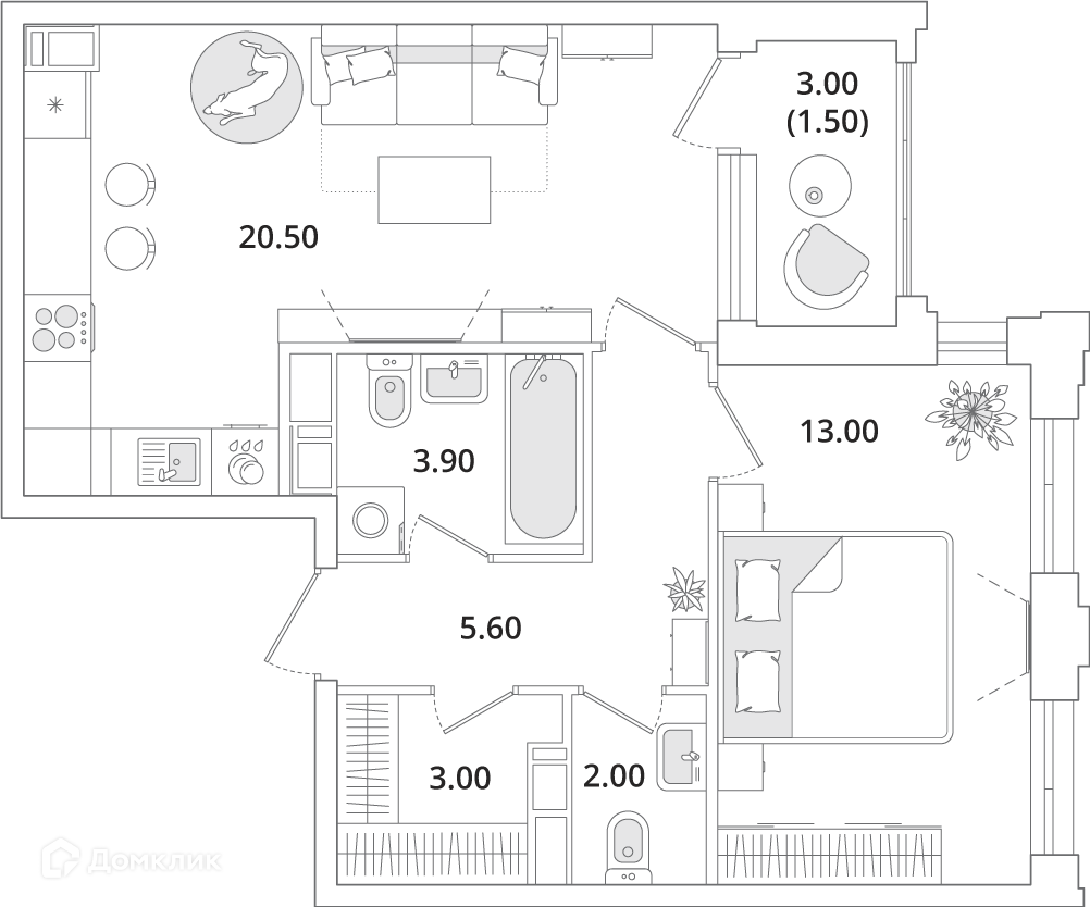 ✅ Кухня: 20.5 м² — идеальна для семейных ужинов.