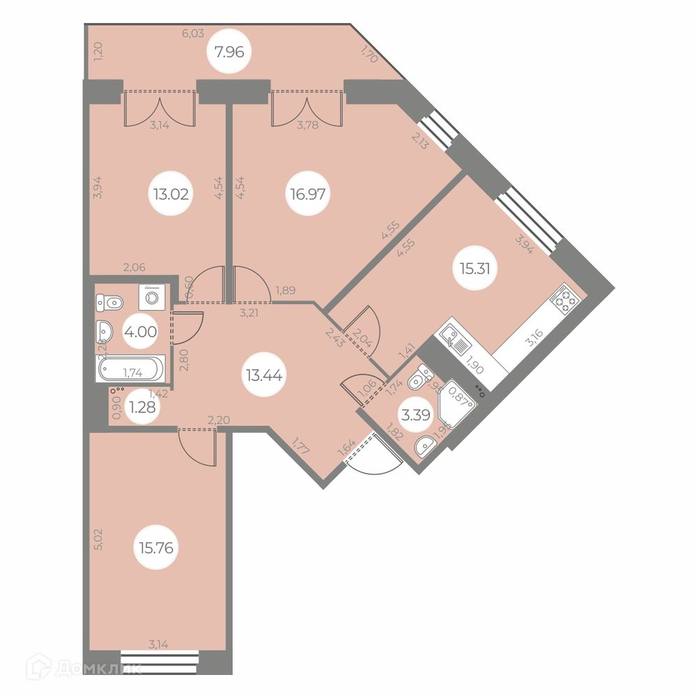 ✅ Кухня: 15.31 м² — идеальна для семейных ужинов.