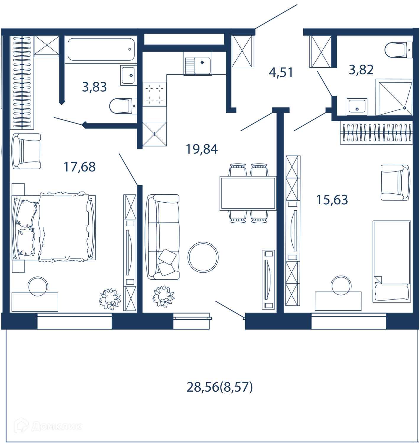 ✅ Кухня: 19.8 м² — эргономичное пространство.