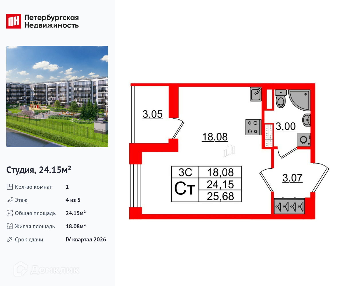 Предлагается Студия в современном жилом комплексе "ЖК Парадный ансамбль" 🏢