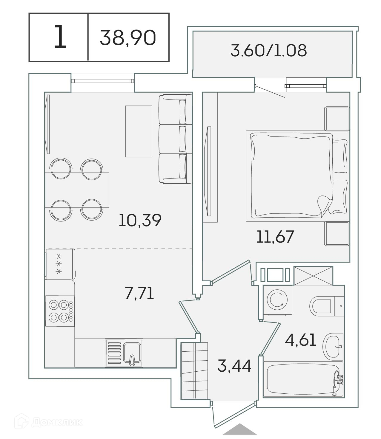Планировка 1 комн. в ЖК "Лампо"