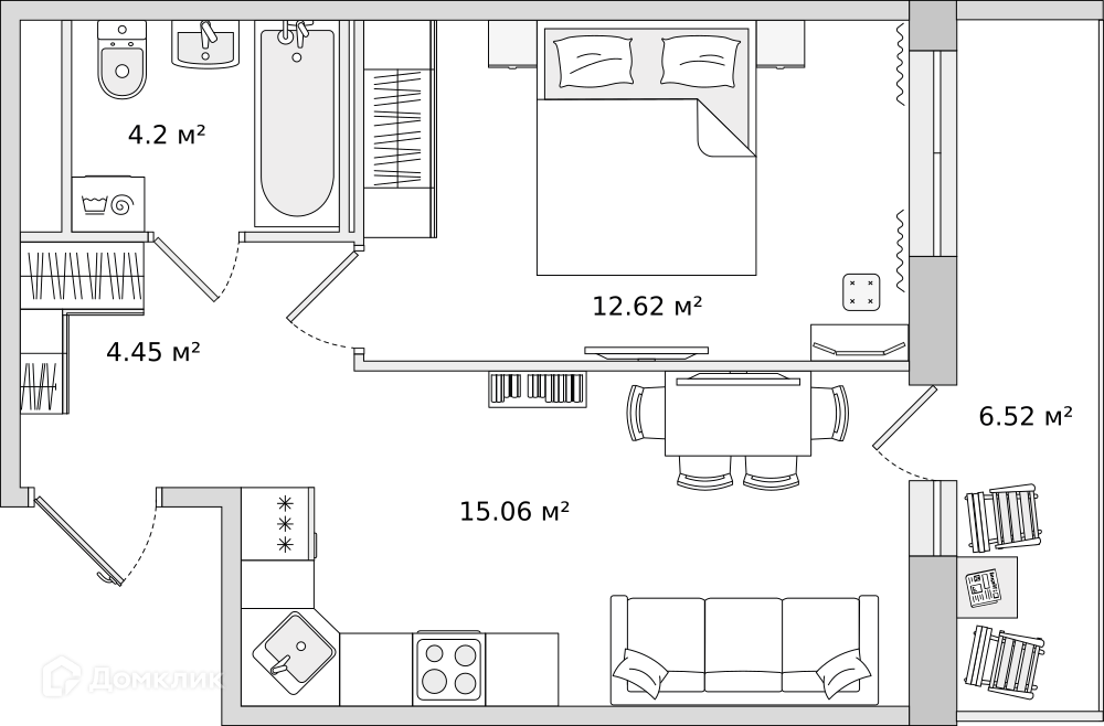 • Комнат - 1-комнатная квартира