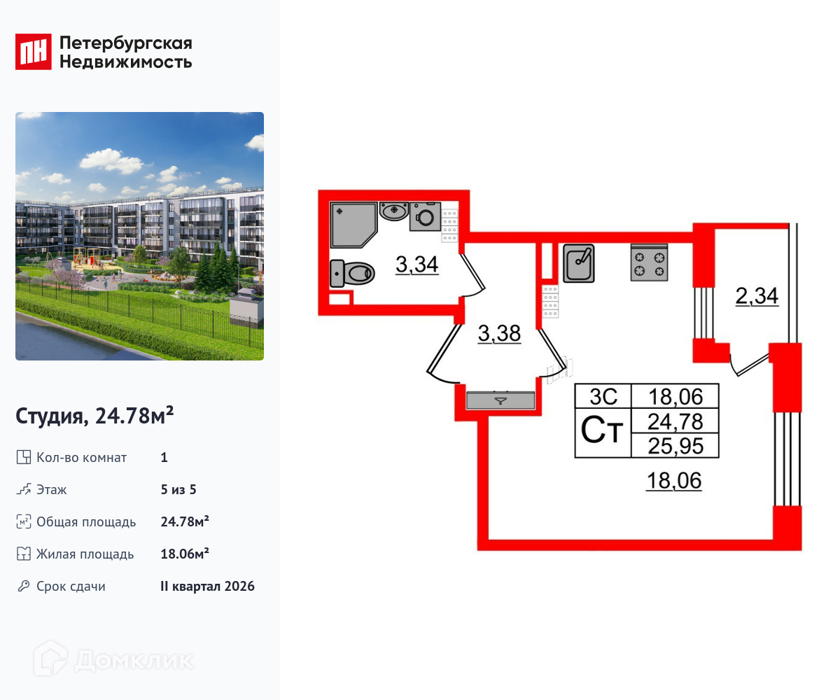 • Площадь - 24.78 м²