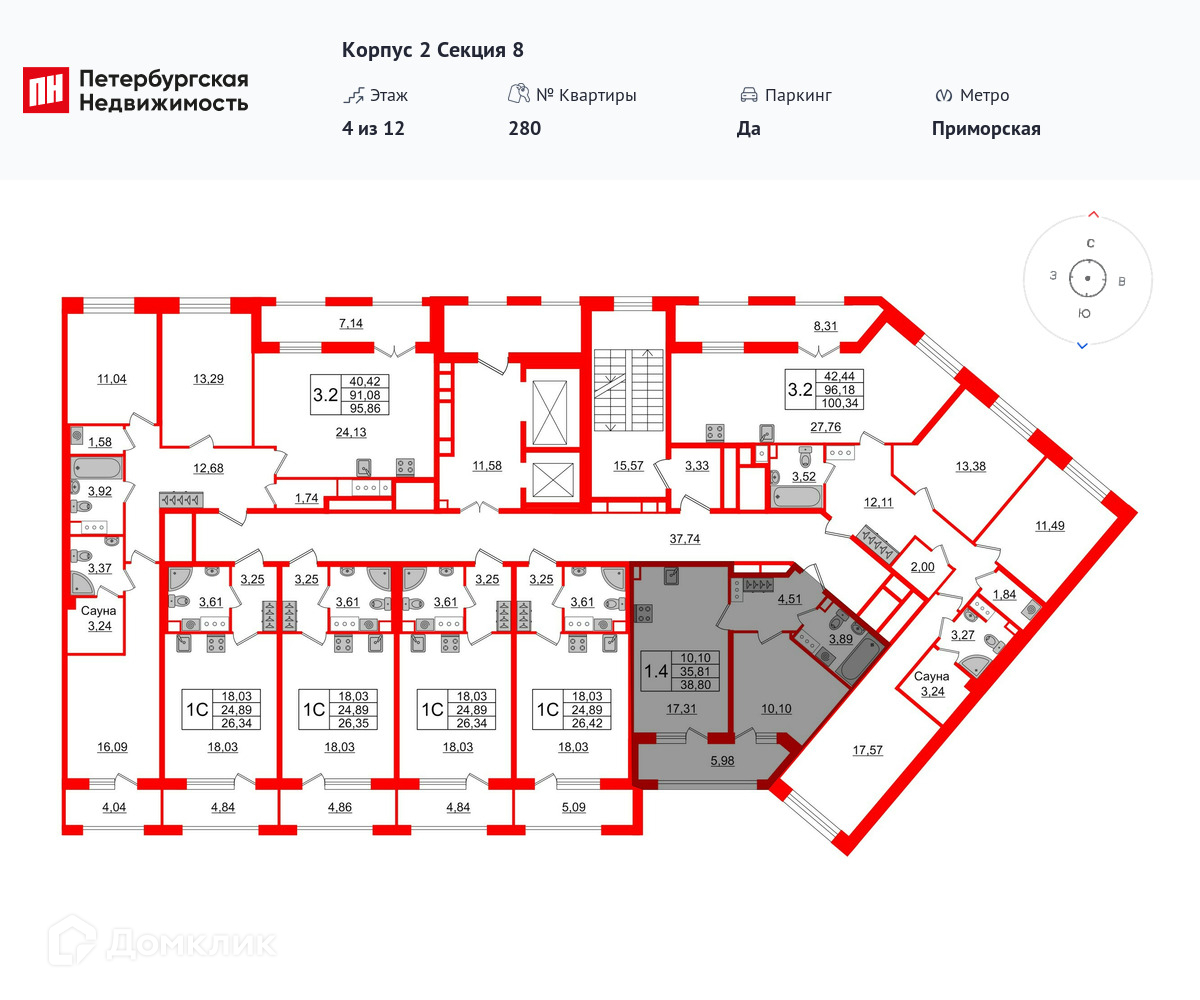 Площади квартир