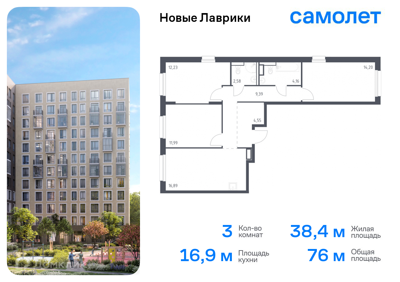 В продаже 3-комнатная квартира в новом жилом комплексе "ЖК Новые Лаврики" 🏢. Квартира расположена на 12-м этаже 13-этажного дома. Прекрасный выбор для семьи.