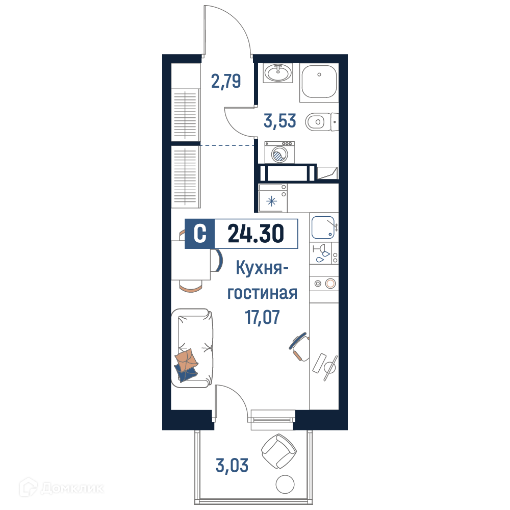 Планировка 1 комн. в ЖК Максималист