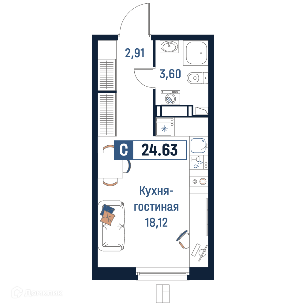 Планировка 1 комн. в ЖК Максималист