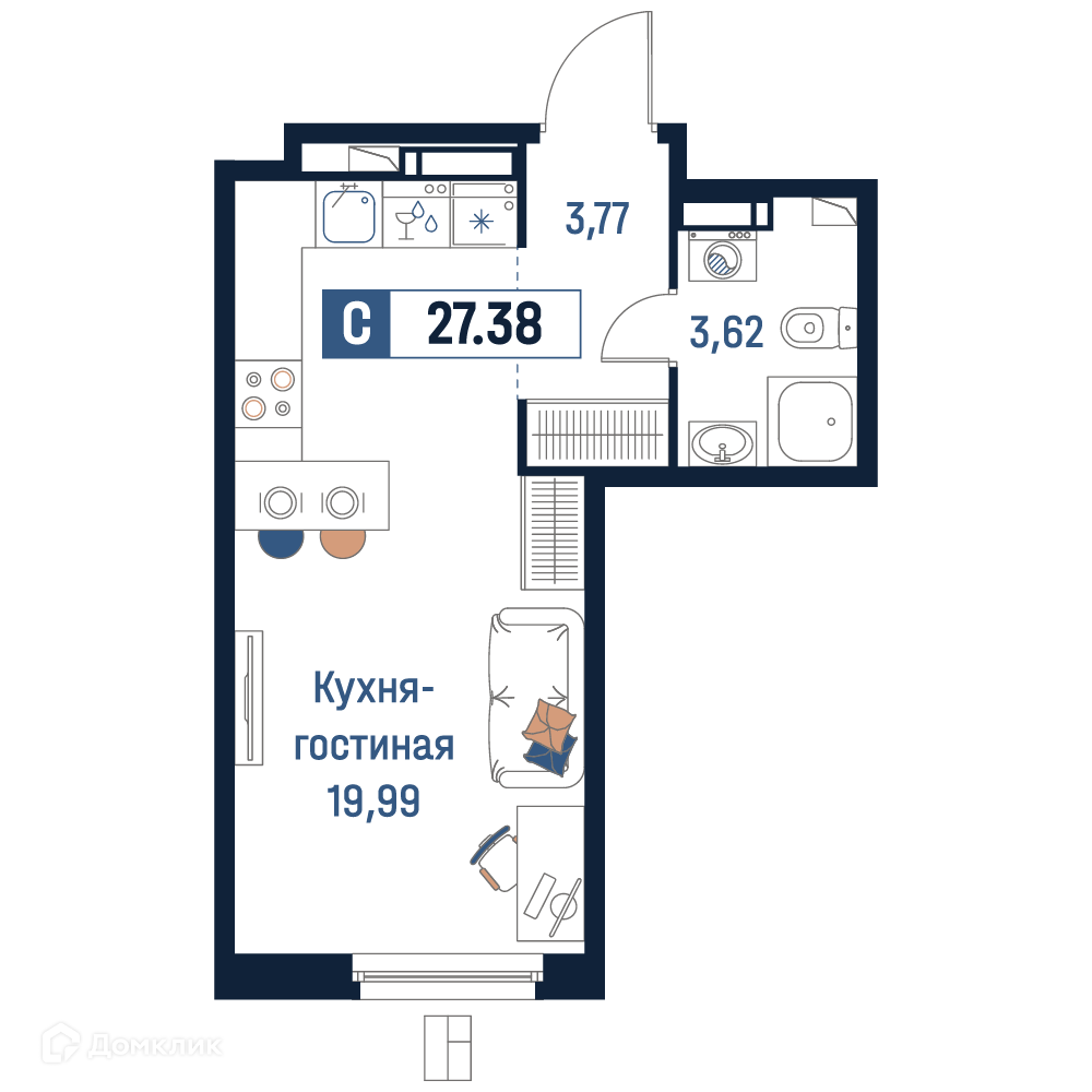 - ✅ Общая площадь: 27.38 м².