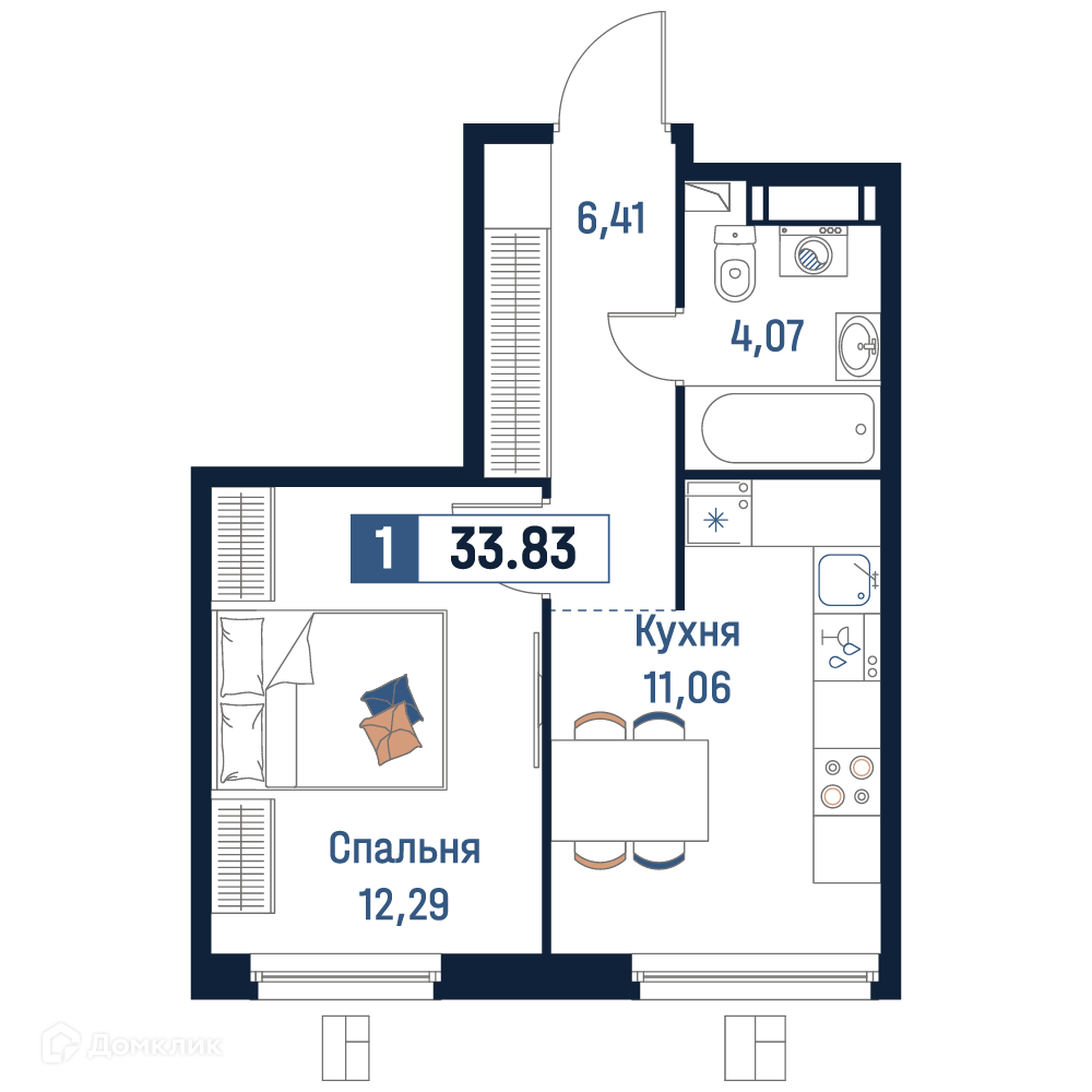 Планировка 1 комн. в ЖК Максималист