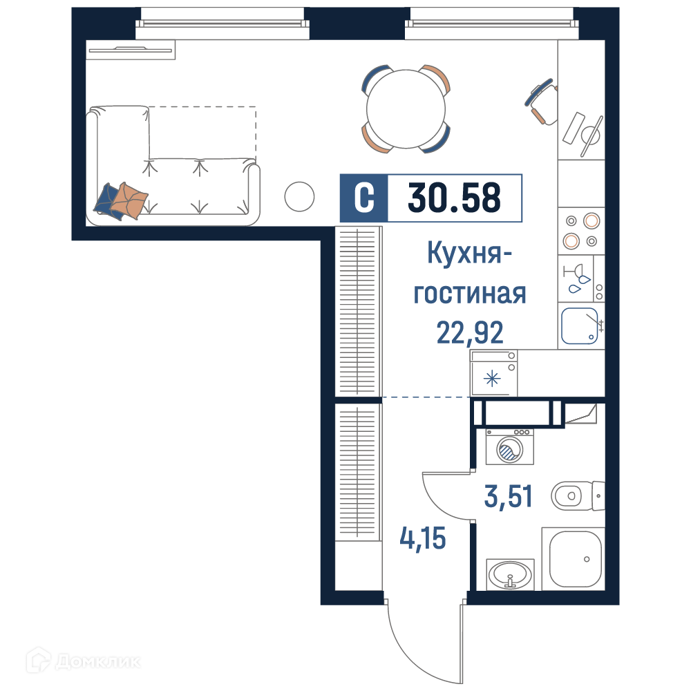 - ✅ Просторная жилая площадь: 22.92 м².