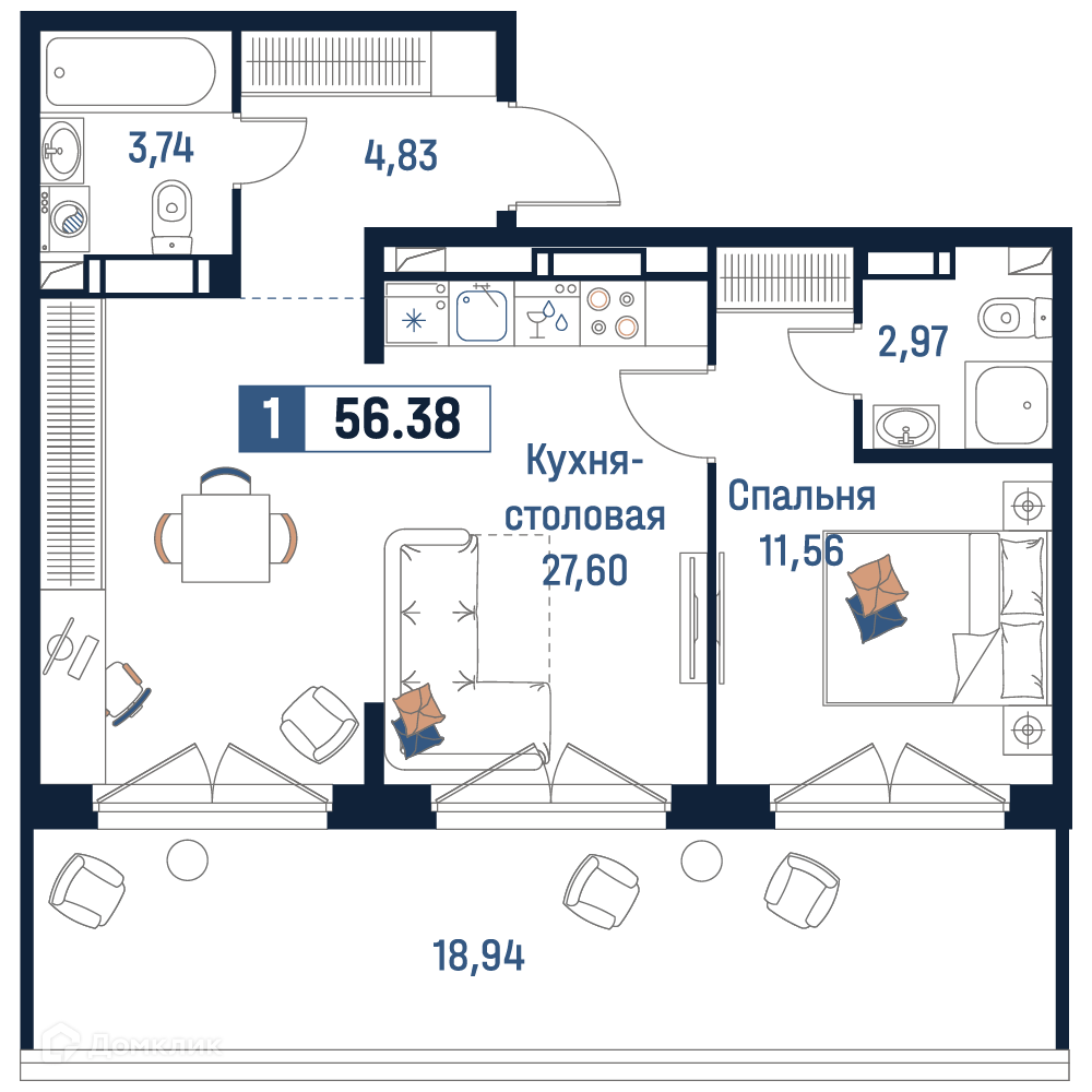 - ✅ Кухня: 27.6 м² — место для кулинарных шедевров.