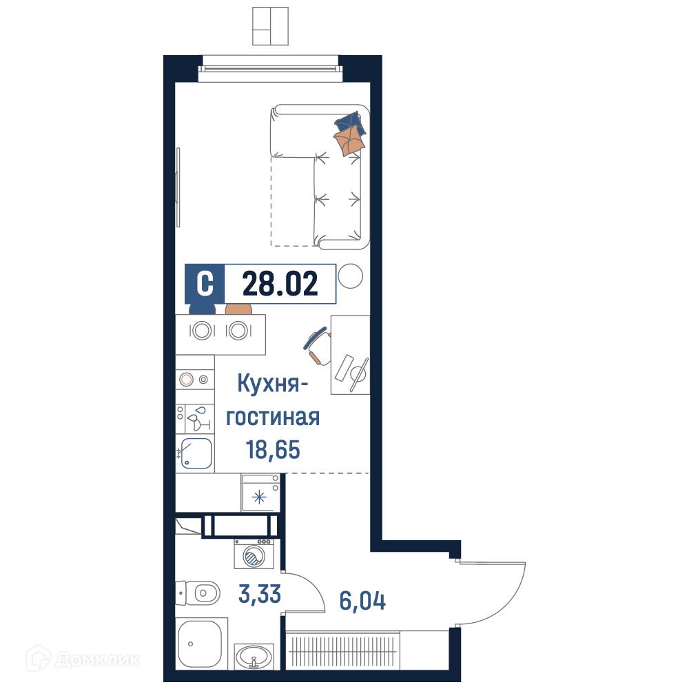 - Общая площадь: 28.02 м²