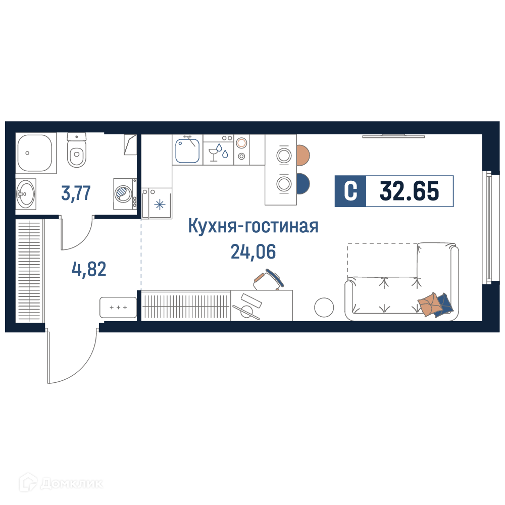 - ✅ Светлая жилая площадь: 24.06 м².