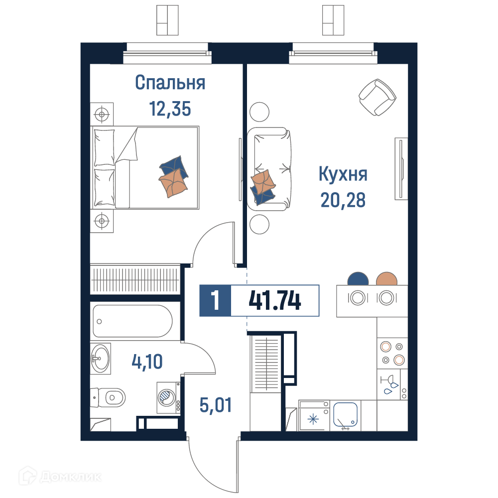 Планировка 1 комн. в ЖК Максималист