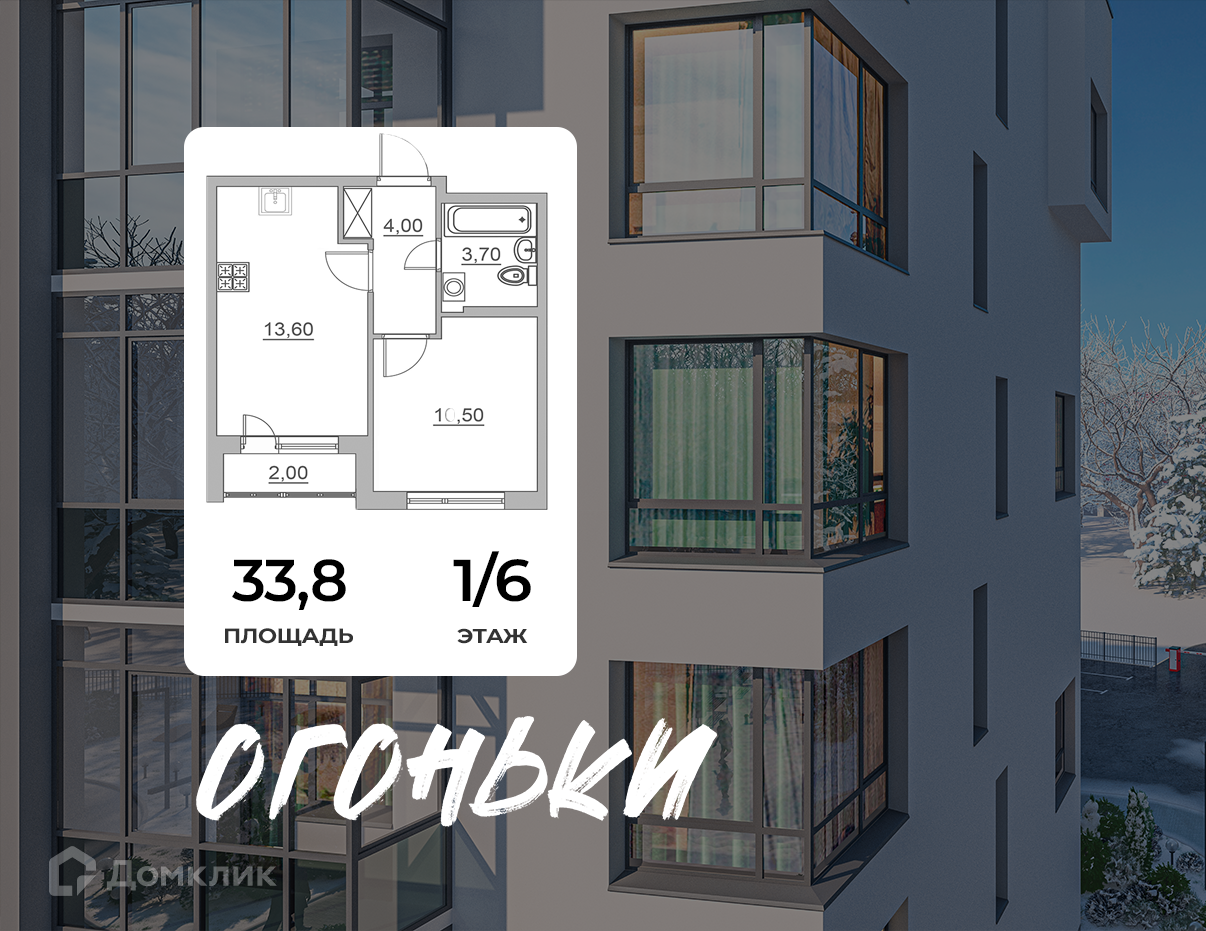 Планировка 1 комн. в ЖК Огоньки