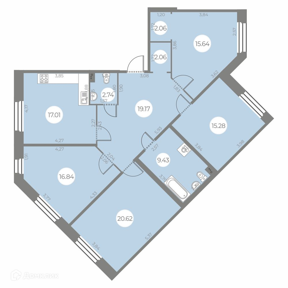✅ Кухня: 17.01 м² — идеальна для семейных ужинов.