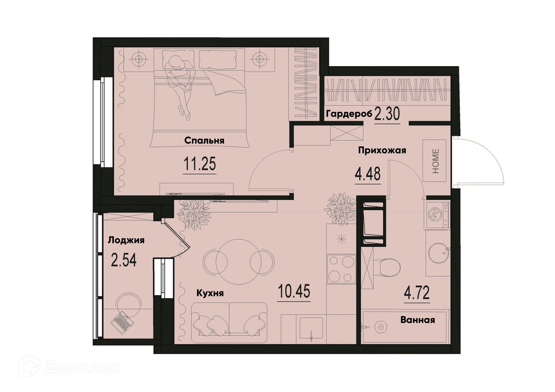 Планировка 1 комн. в ЖК ID Murino III (Ай ди Мурино III)