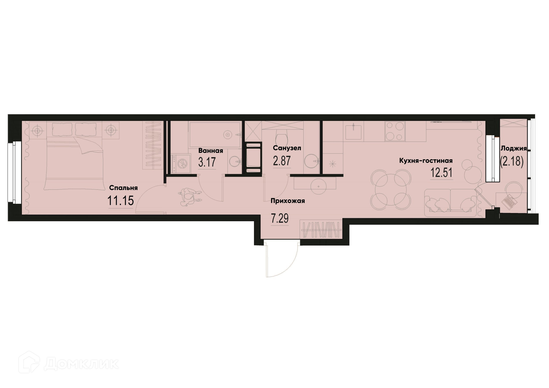 Планировка Студия в ЖК ID Murino III (Ай ди Мурино III)
