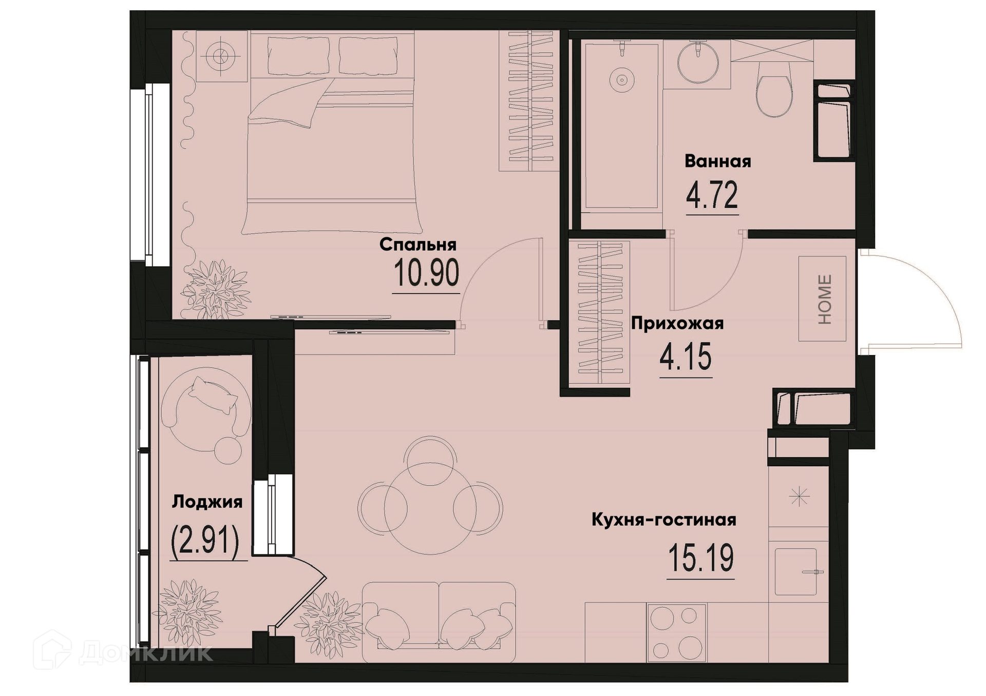 Планировка 2 комн. в ЖК ID Murino III (Ай ди Мурино III)