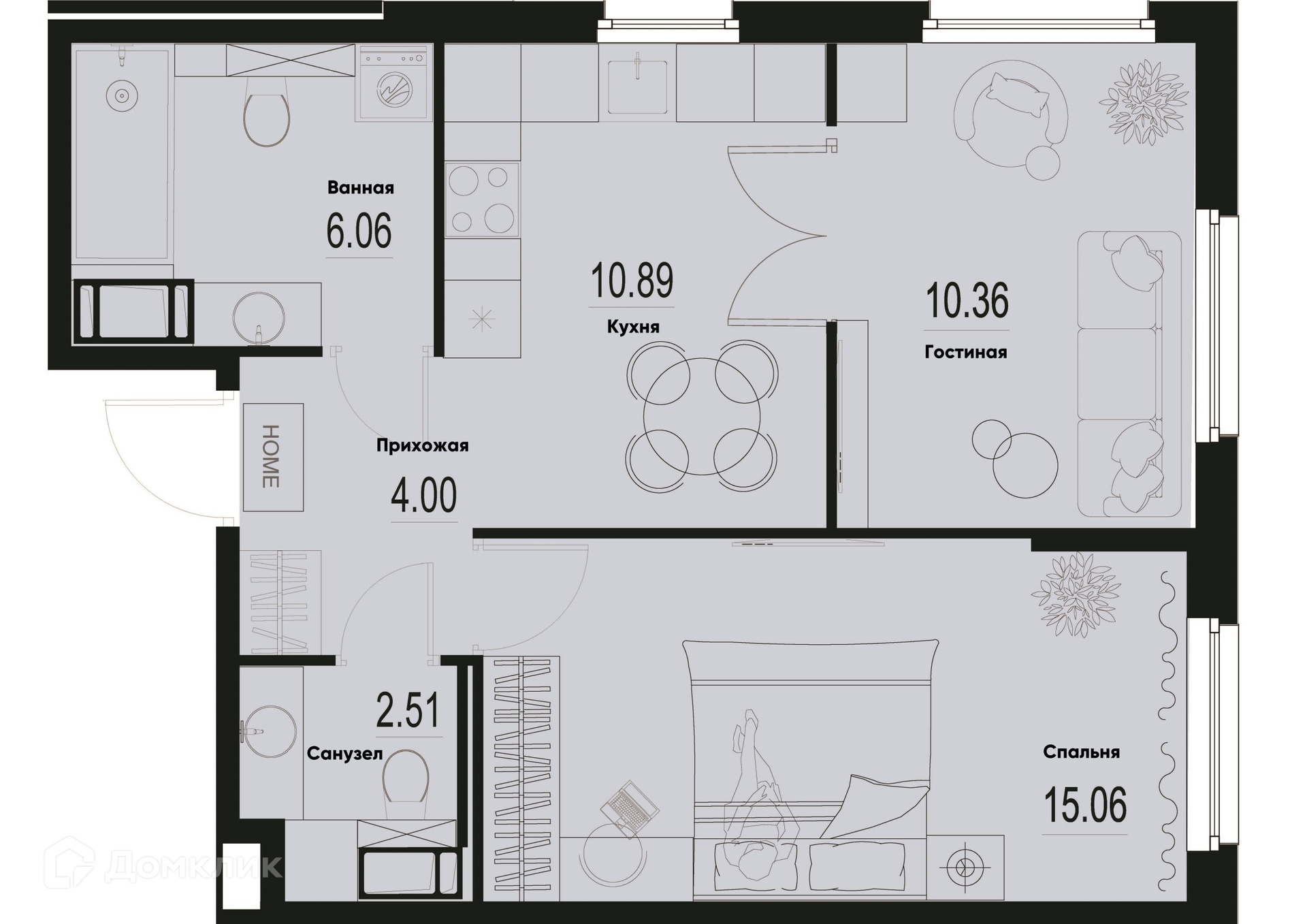 Планировка 2 комн. в ЖК ID Murino III (Ай ди Мурино III)