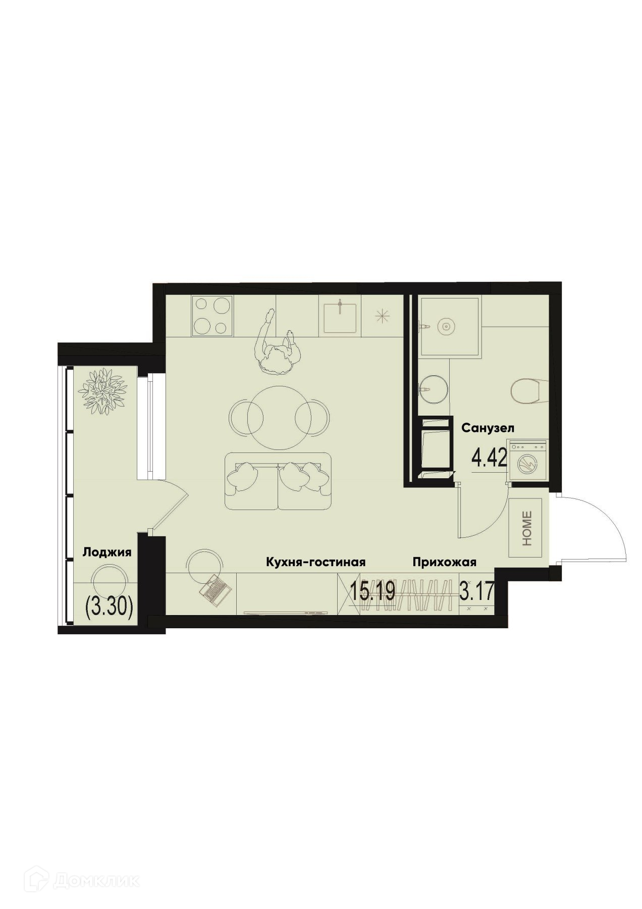 Планировка Студия в ЖК ID Murino III (Ай ди Мурино III)