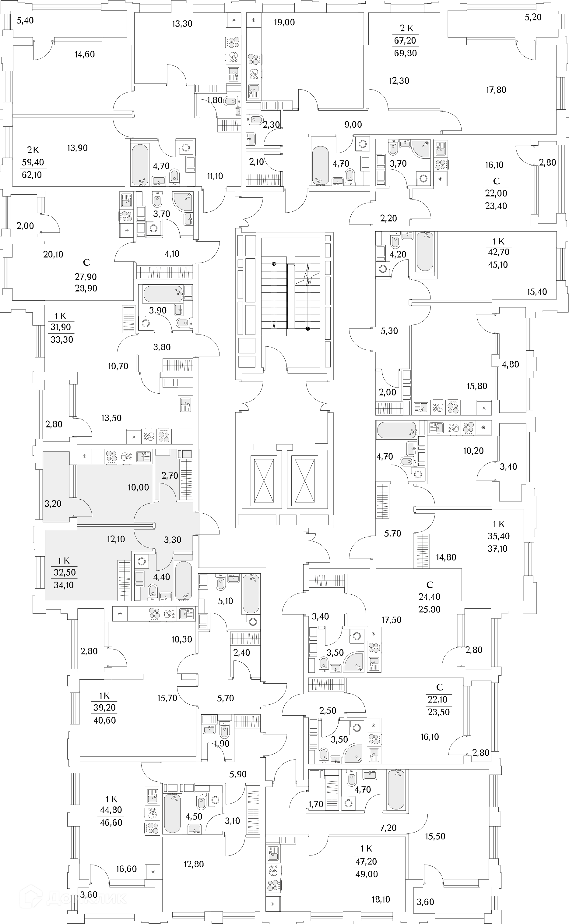 Площади квартир