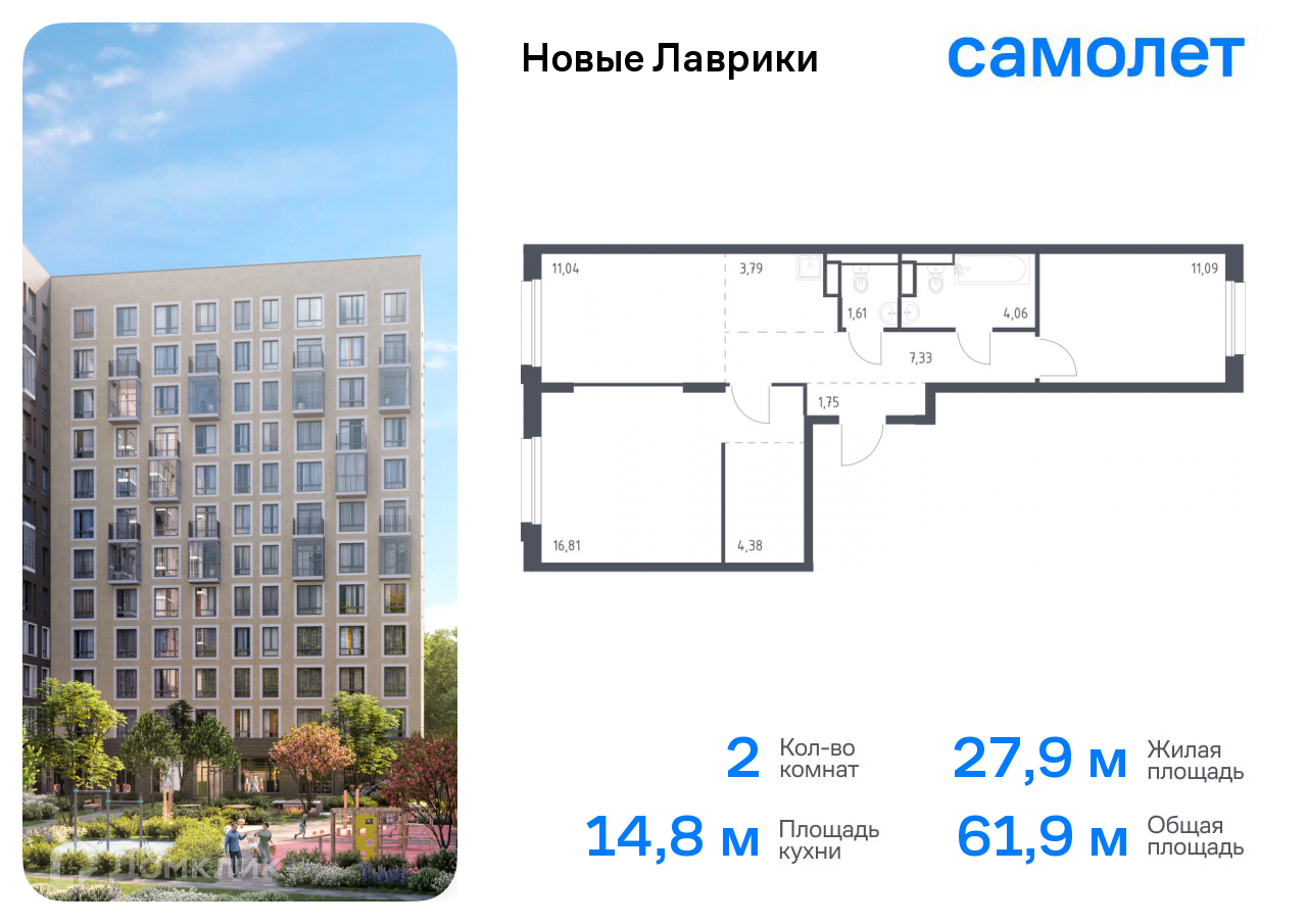 Планировка 2 комн. в ЖК Новые Лаврики