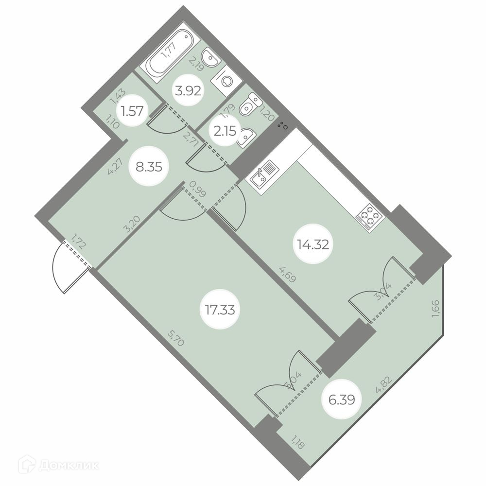 • Площадь кухни - 14.32 м²