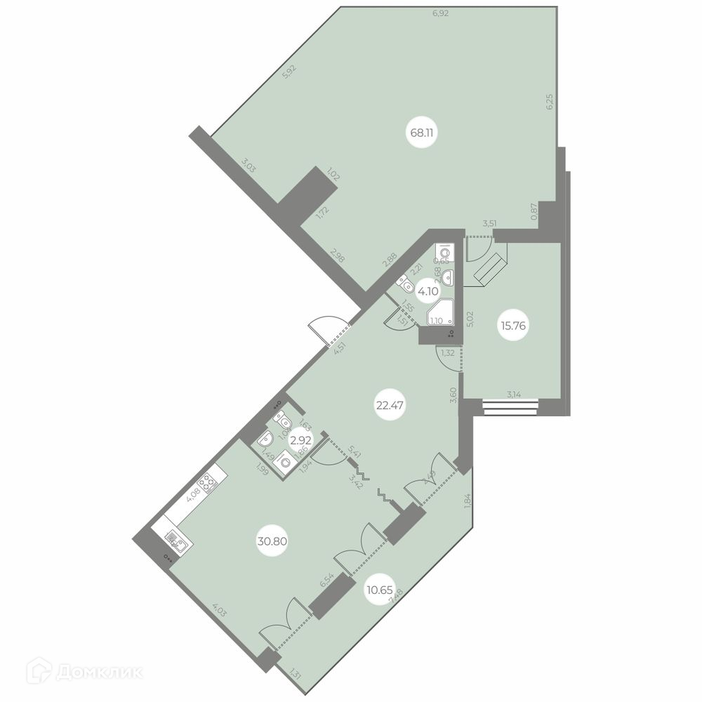 ✅ Кухня: 30.8 м² — эргономичное пространство.