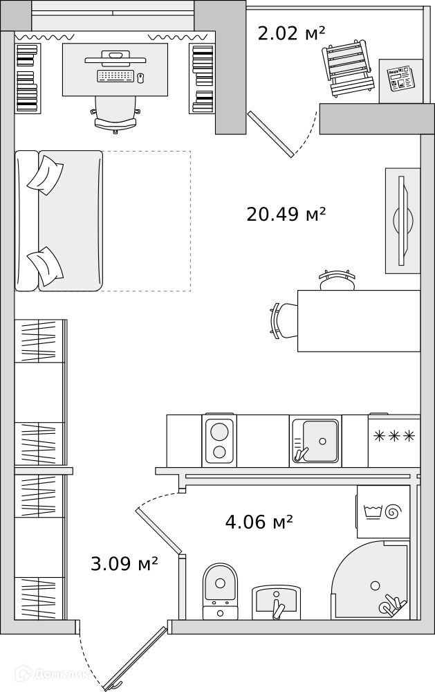 • Площадь - 27.3 м²
