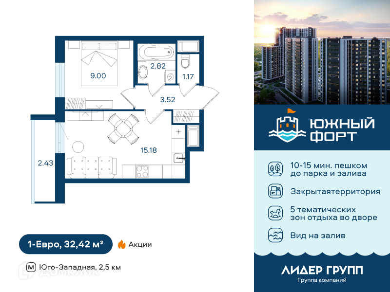 Доступна к покупке 1-комнатная квартира в современном жилом комплексе "ЖК Южный форт" 🏢