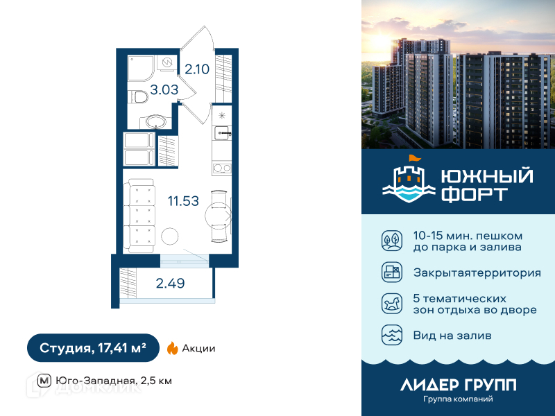 Доступна к покупке Студия в востребованном жилом комплексе "ЖК Южный форт" 🏢