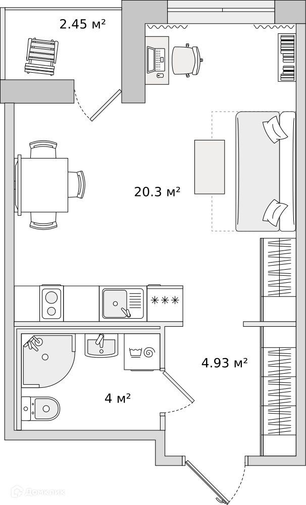 • Площадь - 29.4 м²