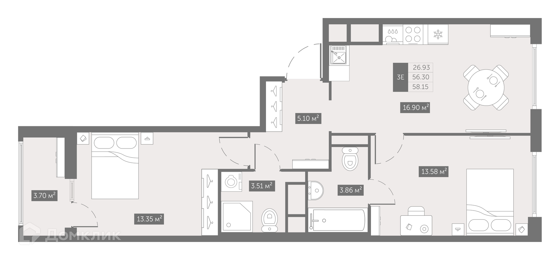 Площади квартир