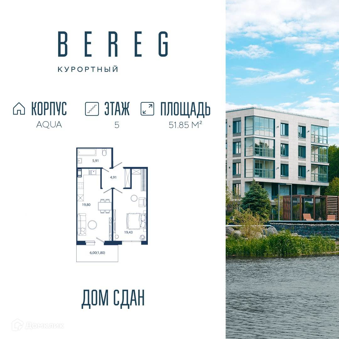 «Bereg. Курортный» – первый проект петербургского девелопера ELEMENT в Санкт-Петербурге, который был сдан в мае 2024 года. Малоэтажный проект расположен в тихой части Сестрорецка, в окружении парков «Гагарка» и «Дубки», на берегу живописного канала. В составе комплекса – три корпуса: AIR, AQUA и WOOD («Воздух», «Вода» и «Дерево»), которые включают 715 апартаментов, в том числе юниты с террасами-патио на первом этаже. Комплекс обеспечен всей инфраструктурой для комфортной жизни – от детского клуба до собственной спа-зоны с бассейном, сухой сауной и тренажерным залом. «Курортную» атмосферу поддерживают концепция «двор без машин», перголы для отдыха, детские площадки в стиле «эко», променад на набережной с «островками» для медитации, а также зеленое благоустройство от Derevo Park на 28 000 растений.