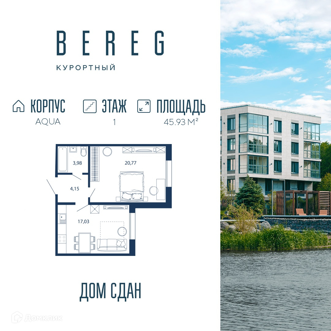Доступна к покупке 1-комнатная квартира в современном жилом комплексе "ЖК "BEREG.Курортный" (Берег Курортный)" 🏢