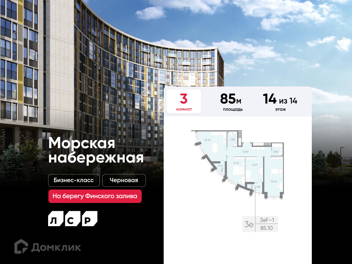 Жилой комплекс «Морская набережная» ― это проект масштабной застройки бизнес-класса, который реализуется в престижной локации Санкт-Петербурга на Васильевском острове. Новостройка будет расположена на 1-й и 2-й линиях Финского залива, что обеспечит жителям возможность наслаждаться эффектными видами из окон квартир. В домах, расположенных на 1-й линии, представлены видовые квартиры с панорамными окнами, выходящими на воды Финского залива. За корпусами на 2-й линии будет высажен хвойный лес, который будет круглогодично радовать жителей. Масштабный проект, разделенный на два квартала (SeaView и «Бульвар»), состоит из 27-ми монолитно-кирпичных корпусов высотой от 13 до 28 этажей. Стильная современная архитектура ЖК с плавными линиями фасадов, большой площадью остекления, изобилием декоративных элементов и светлой отделкой эффектно выделяется на фоне окружающей застройки. Строительство ведется в 4 очереди.Жилой фонд новостройки, который включает более 2000 квартир, насчитывает десятки традиционных и уникальных планировочных решений. Будущие жители могут приобрести компактную уютную студию площадью от 18.3 кв. м, обратить внимание на лоты с двусторонней ориентацией окон, выбрать недвижимость с угловым балконом или лоджией, с просторной кухней-гостиной или с отдельными гардеробными помещениями. В многокомнатных квартирах спроектированы ниши под хранение вещей и дополнительные санузлы. Максимальная площадь недвижимости в проекте составляет 211.5 кв. м. Высота потолков, в зависимости от формата жилья, варьируется от 2.7 до 3.5 м. В продаже квартиры без отделки и с чистовой отделкой (Business Eco Light/ Business Eco Dark).Специально для жителей «Морской набережной» девелопер построит объекты социальной инфраструктуры: 4 детских сада с отдельными территориями для прогулок, 3 школы и современную большую поликлинику. На первых этажах зданий разместятся предприятия ритейла с отдельными входными группами со стороны улицы. Новостройка расположена в 15-ти минутах езды до станции метро «Приморская» и всего в 25-30 минутах езды до Невского проспекта. Поблизости есть благоустроенная набережная и разнообразные объекты инфраструктуры, включая учебные заведения, спортивные клубы, супермаркеты известных сетей, рестораны и кафе.Приобрести квартиру в новостройке можно в ипотеку от ведущих российских банков или в рассрочку.